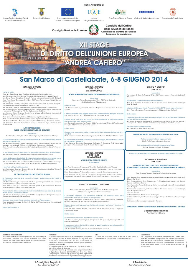 Venerdì 6, sabato 7, e domenica 8 giugno 2014 si terrà il XII stage di Diritto dell’Unione Europea “Andrea Cafiero” nella splendida cornice di San Marco di Castellabate.