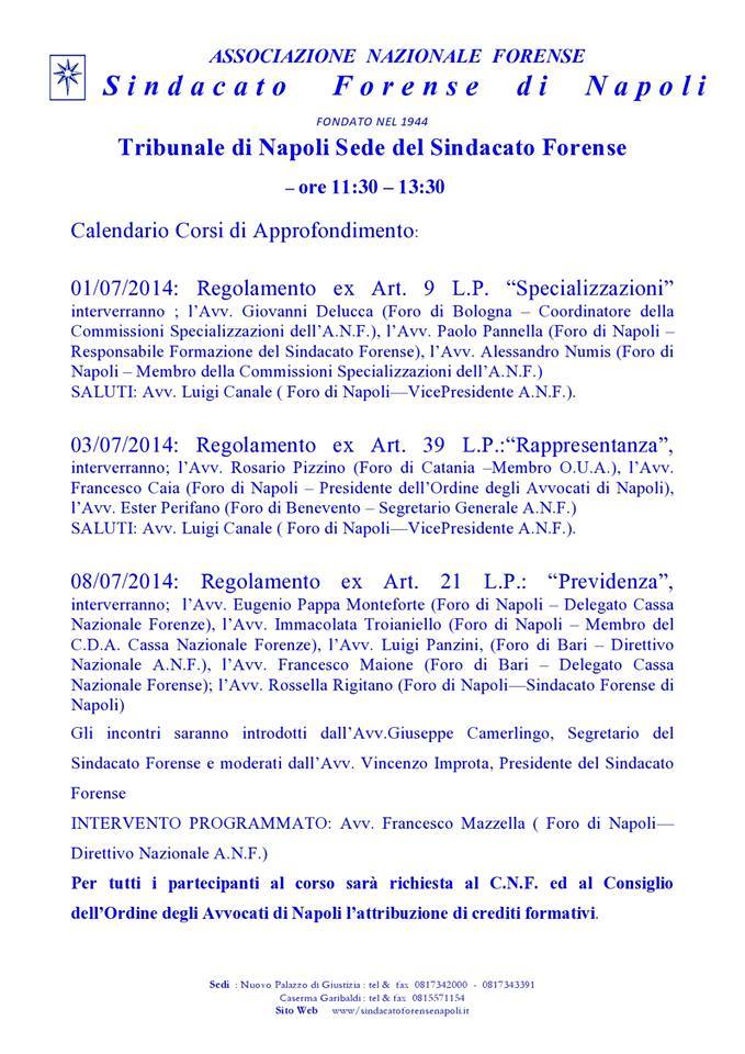 Tribunale di Napoli. Piazza Coperta. Si è tenuto questa mattina, presso la sede dell’Associazione Sindacato Forense, il primo dei tre corsi di approfondimento relativi ai punti più “caldi” della nuova Legge Professionale n. 247/2012, organizzati dall’Associazione Nazionale Forense e dal Sindacato Forense di Napoli.