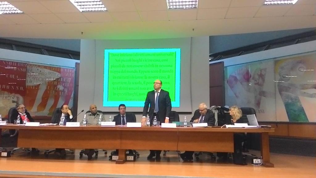 Il Dott. Raffaele Del Giudice, Vice Sindaco di Napoli, nel portare i saluti del Sindaco, impegnato per ragioni di ufficio, ha più volte ringraziato per l’occasione di incontro, evidenziando come il tema dei diritti umani deve essere posto al centro di una profonda analisi di conoscenza. Il periodo storico richiede di operare con responsabilità una sorta di costante manutenzione sui diritti umani da affiancare ad un’opera di trasmissione delle relative conoscenze, anche per adattarci alle evoluzioni necessarie dei diritti umani. Il percorso di tutela ed evoluzione sul tema deve avere al centro tre cardini fondamentali: diritto, cultura e conoscenza. Solo in questo modo si può pensare al futuro senza sentirsi minacciati.