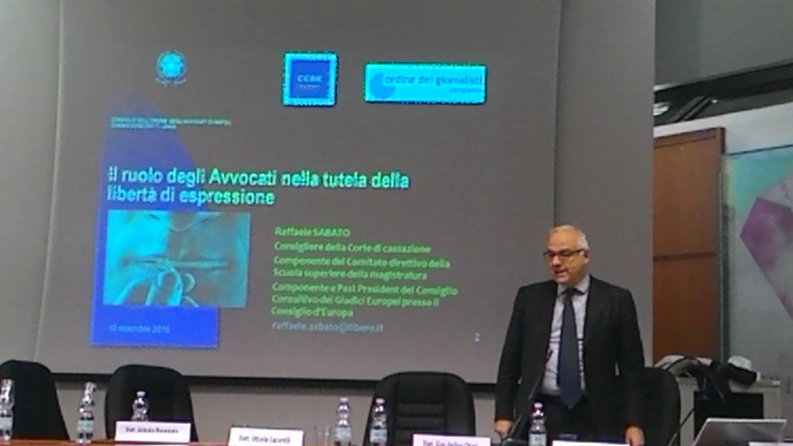 Il Dott. Raffaele Sabato – Consigliere della Corte di Cassazione, Componente del Comitato direttivo della Scuola superiore della magistratura, Componente e Past President del Consiglio Consultivo dei Giudici Europei presso il Consiglio d’Europa – ha evidenziato la situazione della libertà di espressione nei paesi cd. avanzati, ove i mass media costituiscono il canale privilegiato per conoscere le informazioni riguardanti i processi o le vicende giudiziarie. Anche gli Avvocati hanno necessità di comunicare per l’esercizio e lo sviluppo della professionalità, sempre più con carattere di imprenditorialità, ma soprattutto per esercitare il ruolo di difesa. Il Consigliere ha osservato che a differenza dei magistrati e della stampa, gli avvocati non costituiscono un potere, ma esercitano una funzione di rilievo costituzionale e, dunque, trattandosi di una funzione gli avvocati non incontrano limiti nell’esercizio della libertà di espressione se non quelli interni e deontologici, non potendo essere puniti per l’esercizio della loro funzione, sempre che non vi siano risvolti penali. Ci sono doveri ricavabili dalla giurisprudenza che gli Avvocati devono osservare perchè comunque compartecipano alla realizzazione dei fini della Giustizia. Alla stessa stregua, anche i Magistrati hanno il diritto – dovere di conoscere dei fatti ed indagare su di essi senza condizionamenti esterni, ma esistono dei limiti. Infatti, il diritto alla libera espressione ed alla libera informazione comporta doveri e responsabilità ed in quanto tale può essere soggetto ad alcune formalità e limiti, per garantire l’autorità e l’imparzialità della magistratura, intesa come funzione giudiziaria e quindi coivolgendo in questo anche gli Avvocati, come recita l’art. 10 comma 2 CEDU. Esiste dunque un bilanciamento tra la necessità di preservare l’attività giudiziaria da interferenze esterne indebite e la tutela del diritto all’informazione. Al riguardo, la raccomandazione del Consiglio d’Europa n. 12 del 2010 specifica che il diritto all’informazione sulle questioni giudiziarie dovrebbe, tuttavia, essere esercitato tenuto conto dei limiti imposti dall’indipendenza dell’autorità giudiziaria. La protezione offerta dall ’ art. 10 della CEDU, alla libertà di informazione può quindi essere in conflitto con la garanzia di un giudice imparziale, come previsto dall’ art. 6 CEDU, poiché l’attenzione dei media ai casi giudiziari può causare una indebita influenza sui giudici, siano essi giudici non togati o professionali. La Corte Europea afferma che “Non si può escludere che, abituandosi il pubblico ad uno spettacolo regolare di pseudo-prove presentate nei media, a lungo termine si possano verificare conseguenze nefaste per l’accettazione dei tribunali come il luogo appropriato per la risoluzione delle controversie legali” ( ECHR sentenza Sunday Times vs UK 1979). Tale sentenza pone in luce l’esistenza del conflitto tra i differenti diritti in questo ambito, nella considerazione che l’attenzione dei media alle vicende giudiziarie può avere un’indebita influenza sui giudici e comunque potrebbe influenzare l’opinione pubblica sull’imparzialità e sull’autorità della Giustizia. La diffusione di notizie entra in conflitto anche con altri valori quali la presunzione di innocenza, se la diffusione delle notizie crea nell’opinione pubblica una aspettativa verso una decisione di condanna. A rigore la cronaca giudiziaria riguardante reati deve attenersi ai principi enucleati nella sentenza Sunday Times, pertanto, qualsiasi autorità pubblica ha l’obbligo di non presentare qualcuno come colpevole prima di una decisione finale di responsabilità. Tornando al ruolo dell’Avvocato nella diffusione di notizie, sebbene la presentazione degli elementi “a carico” sia generalmente vietata, nel caso di una presentazione enfatica “a carico” operata dalla stampa, è consentito un bilanciamento attraverso la presentazione di elementi a difesa da parte dell’Avvocato, consentendo all’opinione pubblica di ricevere informazioni di segno diverso ma di eguale peso. Il Dott. Sabato ha concluso approfondendo la raccomandazione del Consiglio d’Europa n. 13 del 2003 che regola la disponibilità delle informazioni sui processi penali attraverso i mass media, e che obbliga gli Stati a consentire che i giornalisti abbiano accesso alle informazioni, nel rispetto della presunzione di innocenza, con l’unico limite del segreto ove previsto dalla legge. Anche per la stampa, come per i magistrati e gli avvocati si stabiliscono criteri di contemperamento delle svariate esigenze da tutelare, disponendo alcuni strumenti di bilanciamento. In particolare, l’accesso alle infomazioni deve essere uguale rispetto alle testate giornalistiche ed ai disparati mezzi di informazioni accreditati. Le notizie devono essere possibilmente acquisite attraverso un dialogo tra presenti e, dunque, con le conferenze stampa o diffuse da un soggetto autorizzato. L’informazione deve essere costante durante il procedimento ed è vietato lo sfruttamento di tali informazione da parte dei pubblici ministeri durante le indagini.