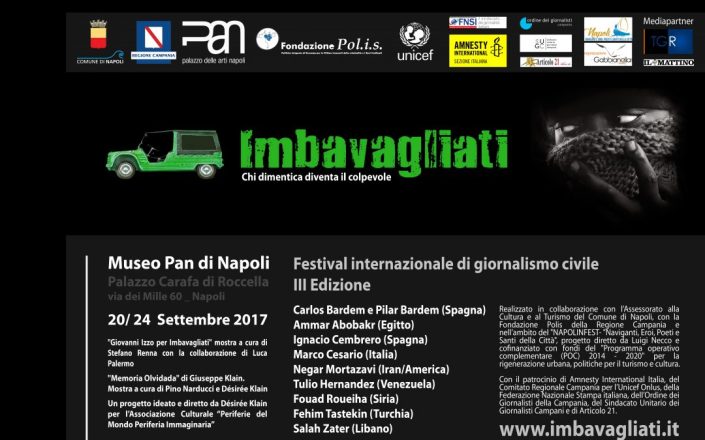 Al via la terza edizione di “Imbavagliati”, il Festival del giornalismo civile, ideato e diretto da Desireè Klain in collaborazione con l’Assessorato alla Cultura e il Turismo del Comune di Napoli e la Fondazione Polis della Regione Campania, che si terrà al Pan Palazzo delle Arti (Via dei Mille 60, Napoli) dal 20 al 24 settembre.