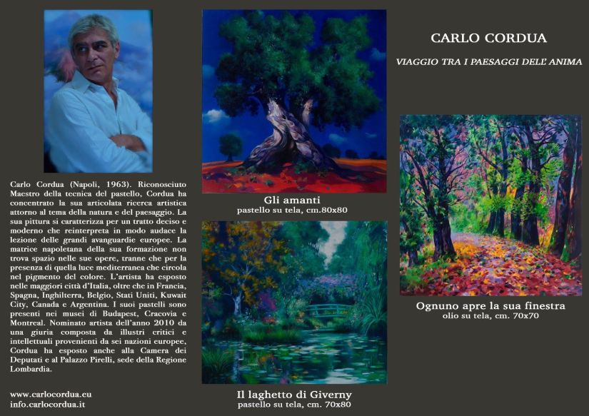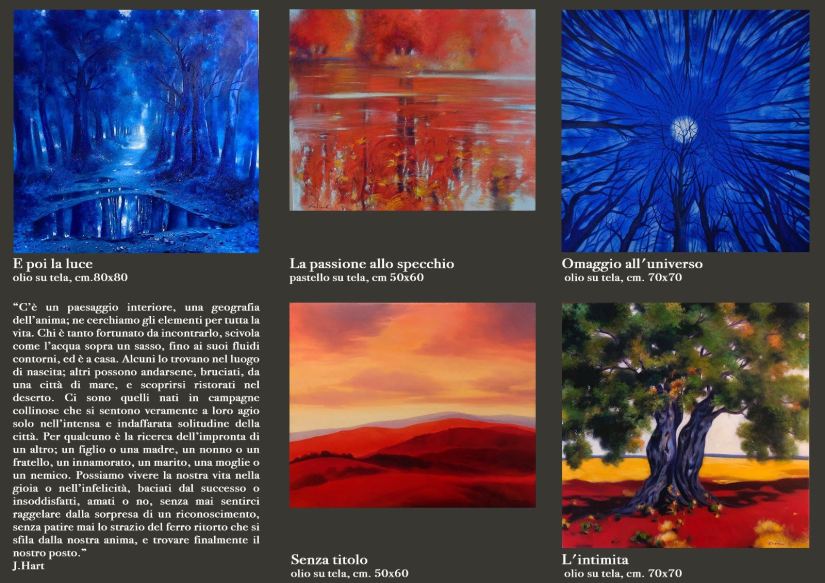 Al centro del dibattito, gli scenari suggestivi e le visioni romantiche dei paesaggi dell’anima declamati da Massimo Sensale nel suo libro, “Appunti di Geografia interiore” (Volturnia Edizioni). Affascinanti spunti di riflessione, tra la malinconia e la poetica del bello, a cura del Maestro Carlo Cordua, con le proprie opere, nelle rievocazioni della “Natura”, rappresentazione dell’umano sentire.