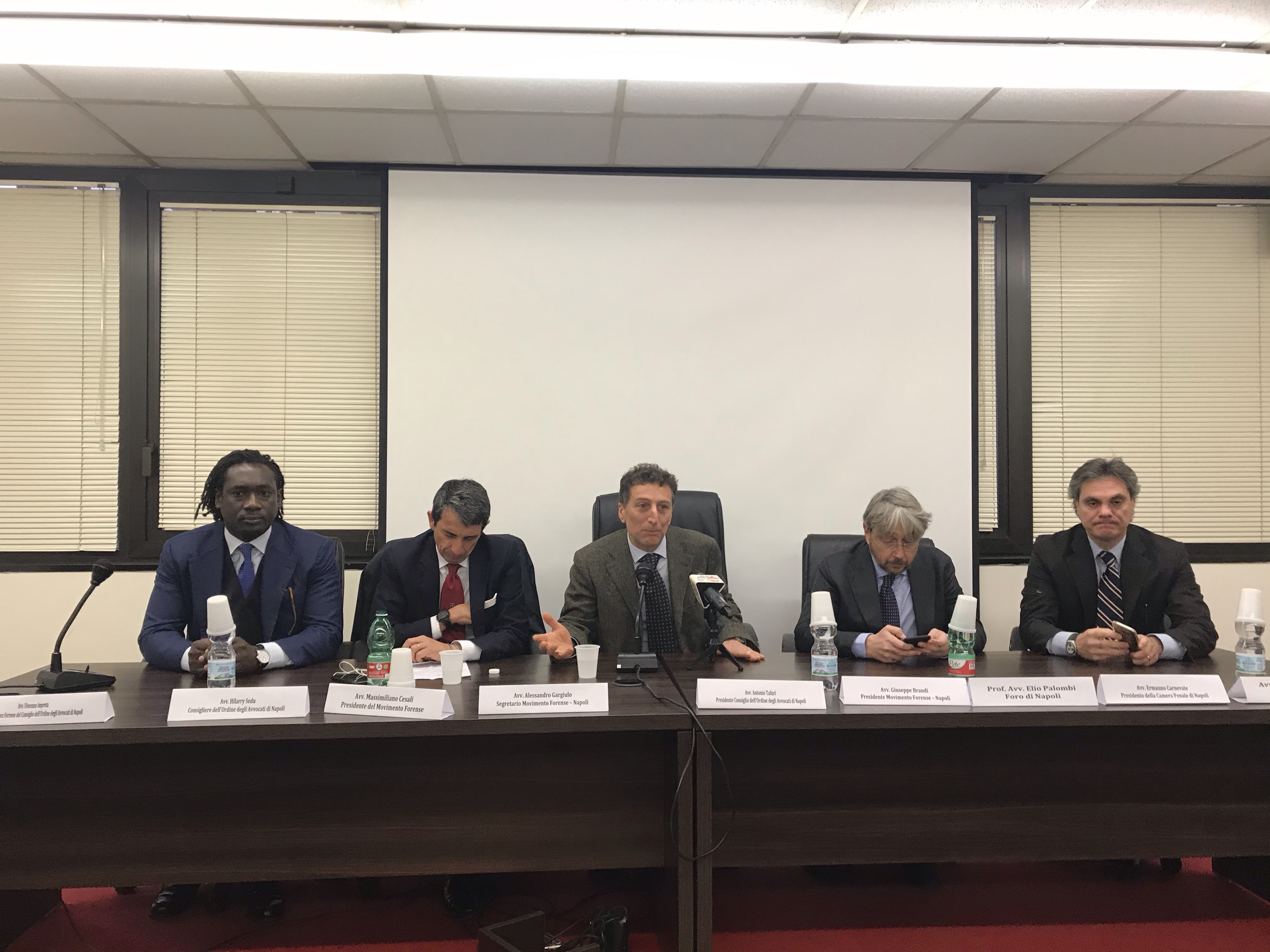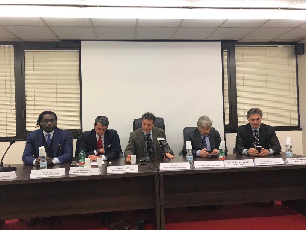 L’incontro che ha visto gli interventi dell’avv. Antonio Tafuri, Presidente del Consiglio dell’Ordine degli Avvocati di Napoli, dell’avv. Giuseppe Brandi, Presidente Movimento Forense – Napoli, con l’introduzione dell’avv. Hillary Sedu, Consigliere dell’Ordine degli Avvocati di Napoli e dell’avv. Alessandro Gargiulo, Segretario Movimento Forense – Napoli, con le provocazioni dell’avv. Massimiliano Cesali, Presidente del Movimento Forense, dell’avv. Vincenzo Improta, Delegato Cultura Forense del Consiglio dell’Ordine degli Avvocati di Napoli, dell’avv. Roberto De Masi del Foro di Napoli, dell’avv. Ermanno Carnevale, Presidente della Camera Penale di Napoli e del prof. avv. Elio Palombi del Foro di Napoli, ha proposto l’elaborazione di un libro bianco, una sorta di documento di autodenuncia alle Istituzioni Europee della vicenda italiana.