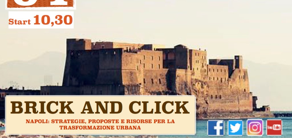 Giovedì 4 giugno 2020, a partire dalle h. 10,30 si svolgerà il webinar in diretta streaming YouTube e Facebook “BRICK AND CLICK – Napoli: strategie, proposte e risorse per la trasformazione urbana“, ideato da Vincenzo Improta, Avvocato del Foro di Napoli, con la partecipazione di Luigi Caramiello, Docente di Sociologia all’Università di Napoli “Federico II”, Marco Demarco, Direttore Editoriale de “Il Riformista“, Giulio Di Donato, Giornalista ed ex parlamentare, Antonio Pescapè, Ordinario di Ingegneria Informatica Università di Napoli “Federico II” e Direttore della DIGITA Academy ed Hilarry Sedu, Consigliere dell’Ordine degli Avvocati di Napoli.