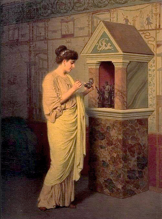 Proprio questo, a mio avviso, è la funzione, presso tutte le civiltà umane, del culto degli antenati: “testimone immortale” e “protezione nel viaggio terreno” degli individui che ricercano loro stessi. Mani, Vesta, Lari e Penati erano difatti, presso i Romani, i sacri protettori della famiglia e dei suoi componenti. In particolare, profondamente certi dell’immortalità dell’anima, i romani si erano convinti che le anime dei morti, o meglio i Mani e i Lemuri, ritornassero sempre alle loro case.