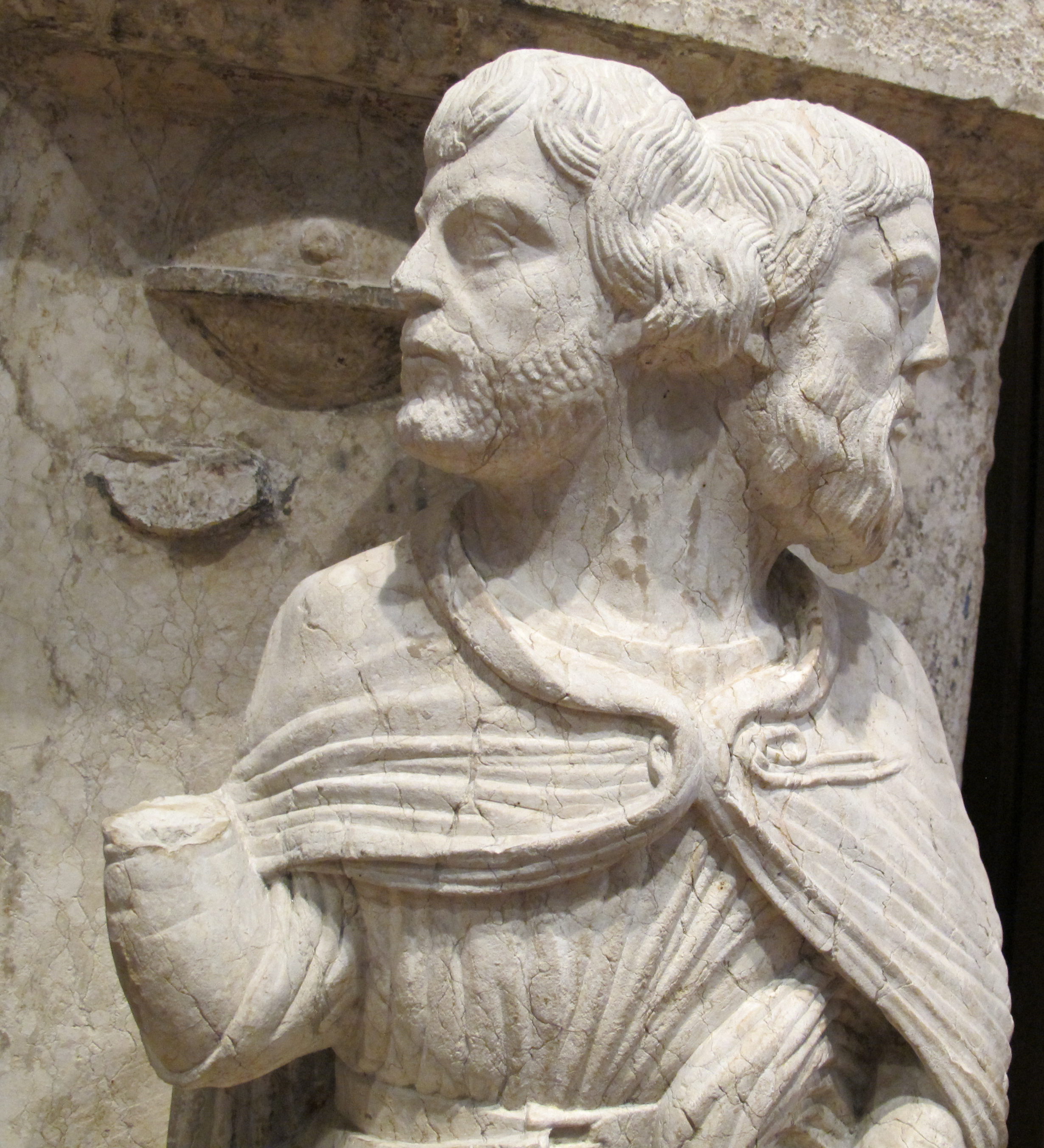 Anche i Lari, dèi di origine etrusca, rappresentavano i protettori della casa; erano, probabilmente, gli antenati benemeriti della famiglia, in quanto accrescitori del suo prestigio. Venivano rappresentati come giovani bellissimi e sorridenti (un po’ come il “l’anno nuovo” nel testo della canzone sopracitata) che, con la loro gradevole immagine, confortavano chi si rivolgeva a loro con devozione. Le immagini dei Lari erano così collocate proprio all’ingresso della casa, dove si poteva trovare il larario, cioè un tabernacolo o una cappella presso cui era raffigurato un cane, simbolo della custodia dei beni della casa.