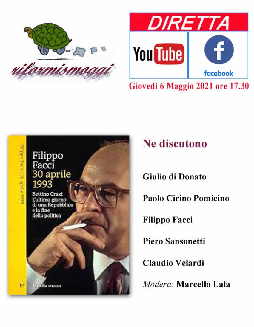 “30 aprile 1993. Bettino Craxi. L’ultimo giorno di una Repubblica e la fine della politica” (Ed. Marsilio) di Filippo Facci. La presentazione, giovedì 6 maggio, a partire dalle h. 17,30