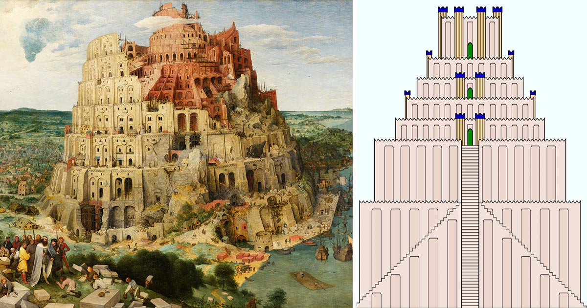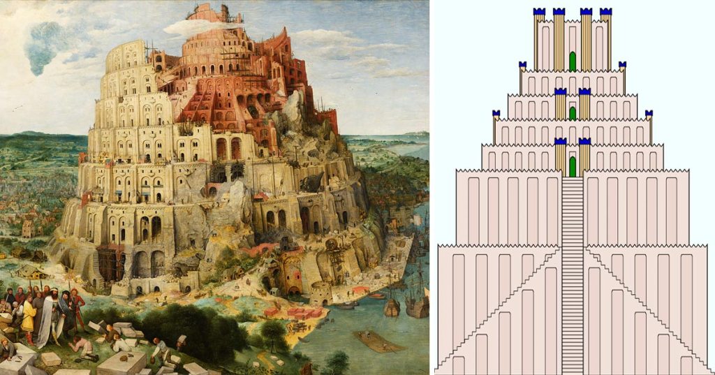 Può sembrare che sto dando per scontato che l’essere umano non nasca sulle Montagne. Beh, io faccio partire il mio ragionamento da quanto tutti noi abbiamo imparato studiando la storia della civiltà umana. Tutti ricordiamo che, in un certo senso, la storia “nasce” tra i fiumi Tigri ed Eufrate, nella terra mesopotamica, di certo non ricca di Montagne ma legata ai corsi d’acqua (elemento fondamentale per la prosperità di comunità umane). In quei luoghi nascono le prime forme piramidali a gradoni, le Ziggurat, ovvero montagne sacre costruite dall’uomo onde essere più vicini agli dei. Da questo punto di vista, allora, possiamo pensare alla stessa Torre di Babele come una artificiale montagna la cui funzione era quella di acquisire il punto di vista di Dio e, alla luce della fragilità e caducità umana nonché della sua arroganza, fu dalla stessa divinità distrutta. Scalando i piani della Torre l’Individuo cercava di carpire i segreti di Dio per potersi così affrancare da Lui e rendersi indipendente: acquisisco il Potere che bramo ma senza assumermene pienamente la Responsabilità. In ambito ebraico-cristiano questo evento è spesso associato ad una qualche forma di punizione divina; a me piace pensare ad un atto amorevole, anche se doloroso, di apprendimento dall’esperienza.