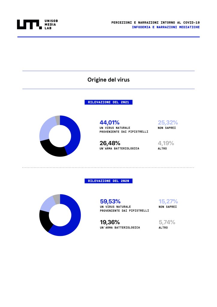 La ricerca scaricabile gratuitamente dal sito web http://www.unisobmedialab.it, mostra in maniera evidente come durante un anno di infodemia si siano alterate le convinzioni di partenza degli intervistati.