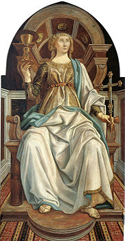 Attraversando gli ultimi tre termini sopradescritti, mediante le loro suggestioni linguistiche, possiamo ragionevolmente affermare che essi non indicano solo semplici virtù che l’uomo deve coltivare per poter essere considerato buono e degno. In ambito cristiano, infatti, esse sono definite virtù teologali, in quanto determinano il rapporto tra l’uomo e Dio. La stessa etimologia del termine teologale, infatti, lo suggerisce, derivando dal greco θεός, “Dio” e λόγος, “parola”. Proprio per questo motivo, allora, tali virtù non possono essere ottenute solo con lo sforzo umano, ma hanno come origine, causa ed oggetto Dio come Uno e Trino, informando in questo modo e vivificando tutte le virtù morali (difatti: la carità, intesa come amore per Dio, deriva dalla fede, cioè dalla rivelazione di Dio stesso, e anche dalla speranza nella vita eterna che conoscere Dio porta). Tali virtù sono quindi infuse da Dio nell’anima dei fedeli per renderli capaci di agire quali suoi figli e meritare la vita eterna. Sono il pegno della presenza e dell’azione dello Spirito Santo nelle facoltà dell’essere umano. Non bisogna dimenticare, comunque, che le virtù teologali (così come tutto ciò che è trascendente) sono sempre state rappresentate simbolicamente nell’iconografia e nell’arte occidentale, sin dai suoi albori. Spesso esse sono state raffigurate come figure femminili (richiamandone così le radici pagane attraverso, ad esempio, il paragone con le tre grazie) giovani e belle. Alle rappresentazioni pittorico o scultoree delle tre virtù venivano così associati simboli iconografici ricorrenti come: il calice o la croce per la fede, una catena o un’ancora per la speranza, il cuore di Cristo per la carità.