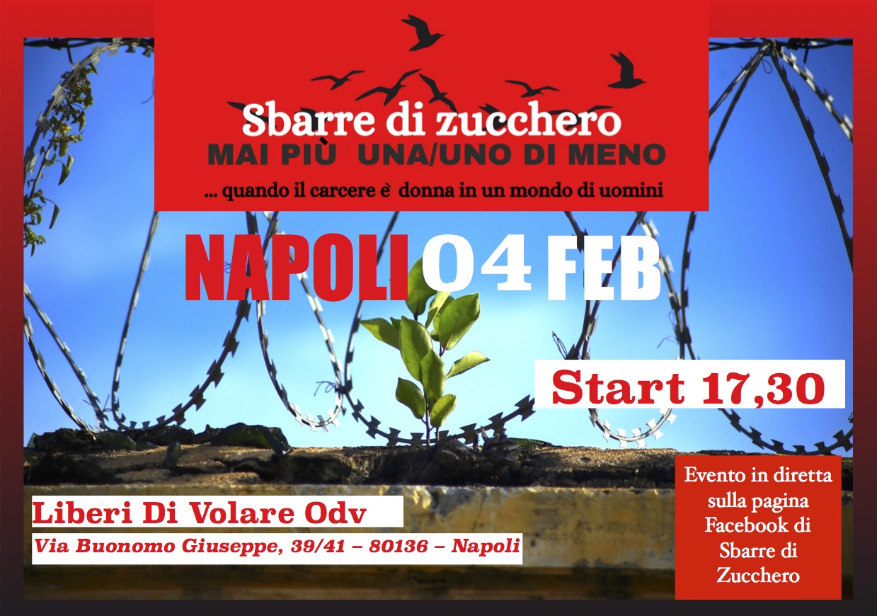 Il carcere è al centro del dibattito nel Rione Sanità per il primo convegno organizzato a Napoli dalla retenazionale di “Sbarre di Zucchero. Quando il carcere è donna in un mondo di uomini”. Titolo del convegno è “Mai più una di Meno”, attraverso le storie di chi ha vissuto e vive il carcere ma anche familiari, volontari, operatori, verranno raccontate luci e ombre del sistema carcere, per riportare al centro del dibattito un tema troppo spesso relegato ai margini. L’appuntamento è alle ore 17.30 nella sede dell’AssociazioneLiberi di Volare Odv in via Buonomo Giuseppe 39, Napoli.