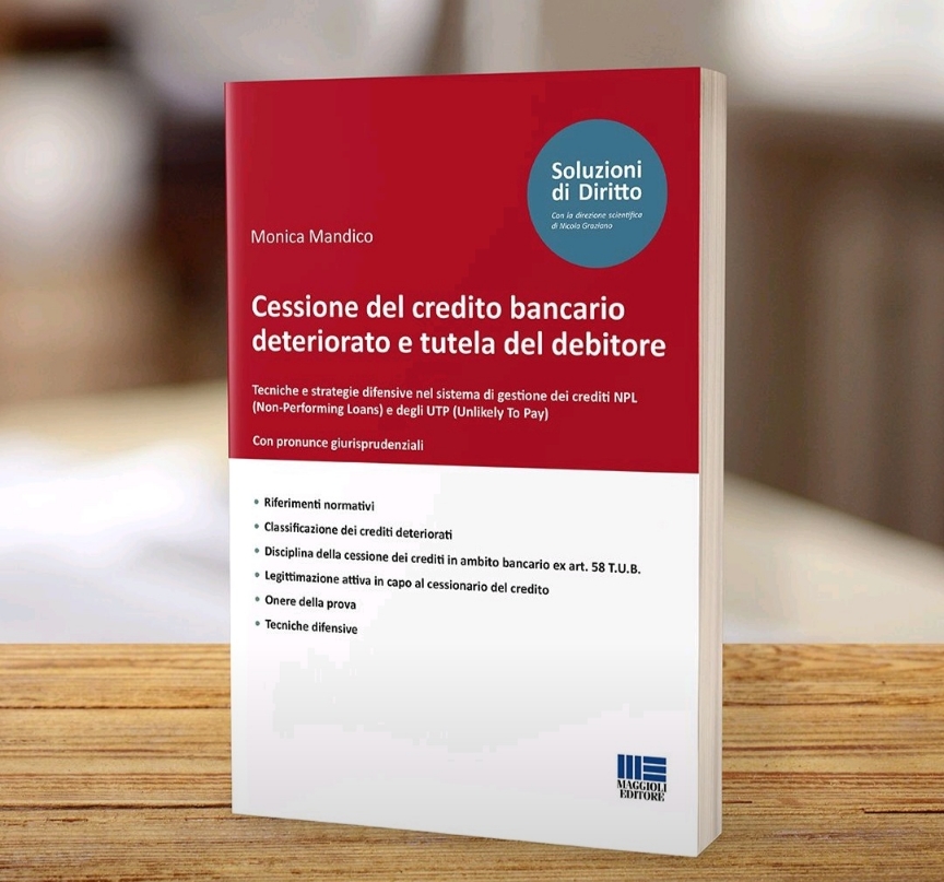 Un libro per denunciare le anomalie del sistema bancario e dei fondi speculatori. Lo ha scritto l’avvocato Monica Mandico e s’intitola “Cessione del credito bancario deteriorato e tutela del debitore. Tecniche e strategie difensive nel sistema di gestione dei crediti NPL (Non-Performing Loans) e degli UTP (Unlikely To Pay)”. Il volume è edito da Maggioli Editore.